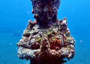 Unveiled in 2025, our newest reef sculpture features a large peace sign rising above the words "World Peace", a reminder that harmony among people and with nature is possible.